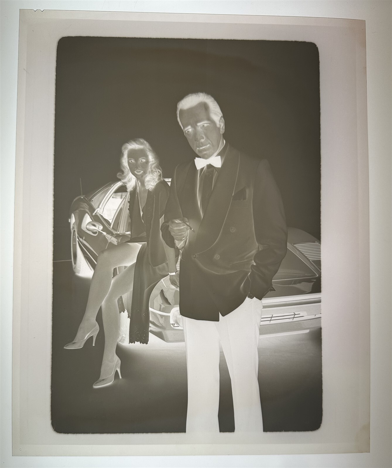 The Man with Bogart's Face Robert Saachi Michelle Phillips Ferrari Original 8x10 NegativeThis is an original studio or photographer's 8x10 inches black and white photographic negative from our historic archive. This is a real collector's item and would make superb quality photographs or prints. This would also be a great addition to any collection or image archive. This original black and white photographic negative is in Excellent condition. This collector's item is being sold from one collector to another, no rights are given or implied. Silver Screen Mementos are gradually releasing from their vast archives thousands of original photographs, transparencies, negatives, slides, lobby cards and other movie or television memorabilia.