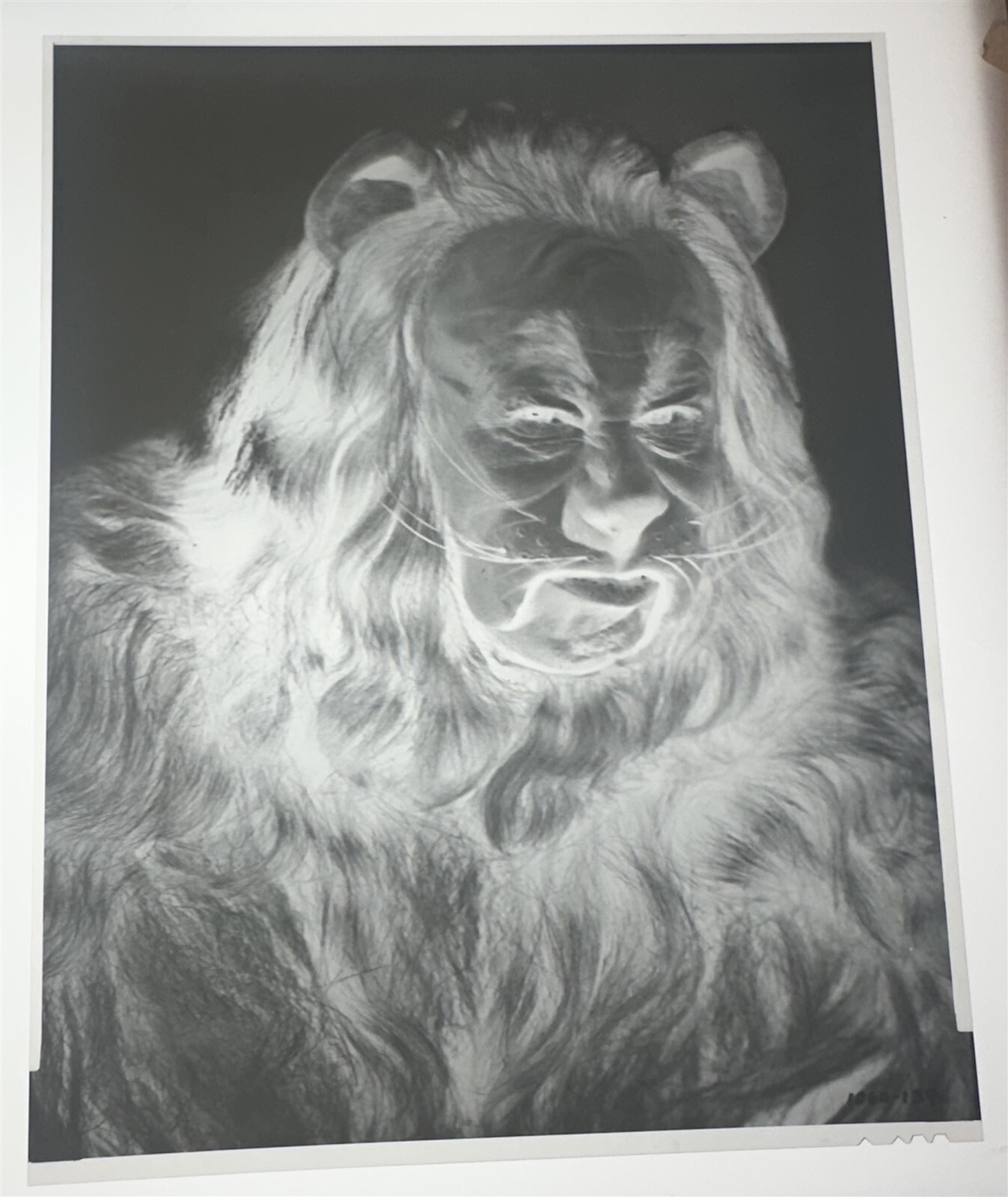 The Wizard of Oz 1939 Bert Lahr Cowardly Lion Vintage 8x10 Studio Duplicate Negative, wonderful portrait from the classic movie. Rare image being released from our historic archives. This is a vintage studio or photographer's 8x10 inch black and white photographic negative from our historic archive. This vintage duplicate negative was created from the original camera negative by the studio or photographer in order to make prints and use for publications. This is a real collector's item and would make superb quality photographs or prints. This would also be a great addition to any collection or image archive. This black and white photographic negative is in Excellent condition. This collector's item is being sold from one collector to another, no rights are given or implied. Silver Screen Mementos are gradually releasing from their vast archives thousands of original photographs, transparencies, negatives, slides, lobby cards and other movie or television memorabilia.
