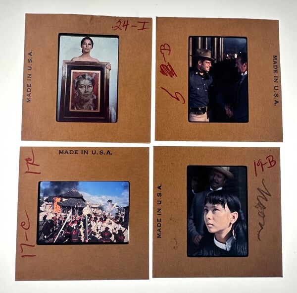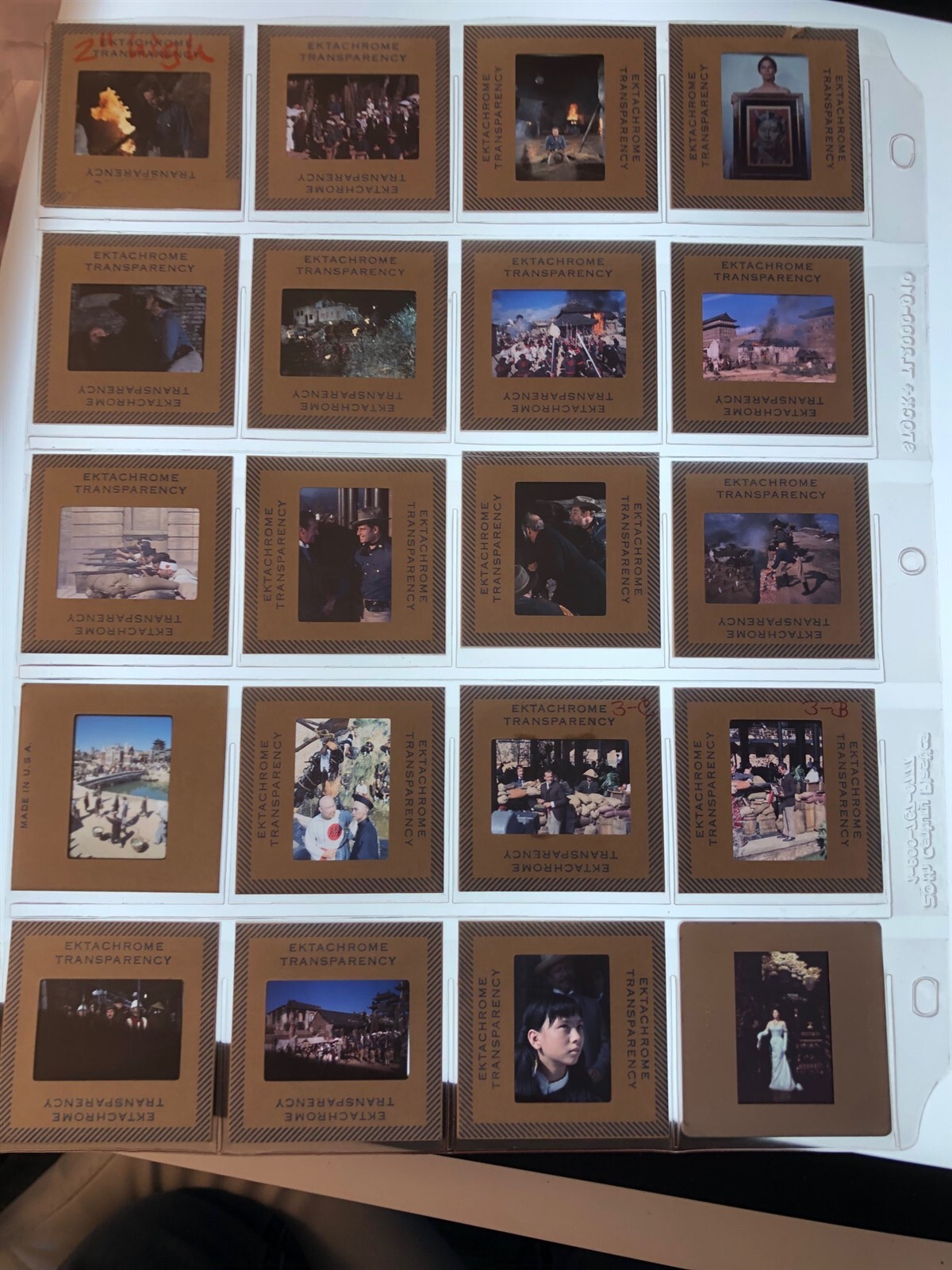 55 Days at Peking 1963 Collection Lot of 20 Original 35mm Camera Transparency Slides from the movie starring Ava Gardner , Charlton Heston and David Niven. This is an original studio or photographer's 35 mm color slide transparency from our historic archive. This is a real collector's item and would make superb quality photographs or prints. This would also be a great addition to any collection or image archive. This original color slide transparency is in Excellent condition. This collector's item is being sold from one collector to another, no rights are given or implied. Silver Screen Mementos are gradually releasing from their vast archives thousands of original photographs, transparencies, negatives, slides, lobby cards and other movie or television memorabilia.