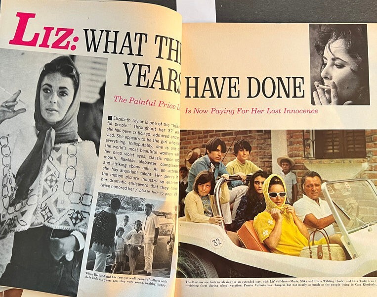 Motion Picture Magazine Elizabeth Taylor Cover Jackie Kennedy, Perry Como, Sophia Loren etc July 1969 A real Collectors’ item being released from our historic archives, this is a complete vintage magazine. Silver Screen Mementos are gradually releasing from their vast archives thousands of original photographs, transparencies, negatives, slides, lobby cards, magazines, brochures, press books and other movie or television memorabilia. This collector's item is being sold from one collector to another, no rights are given or implied. Silver Screen Mementos are gradually releasing from their vast archives thousands of original photographs, transparencies, negatives, slides, lobby cards and other movie or television memorabilia.