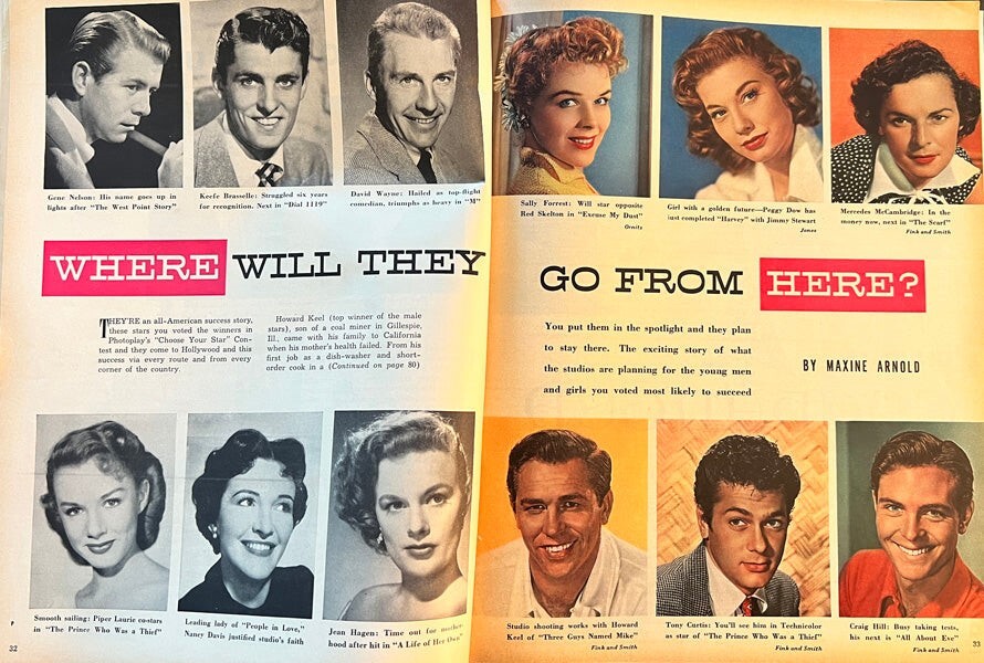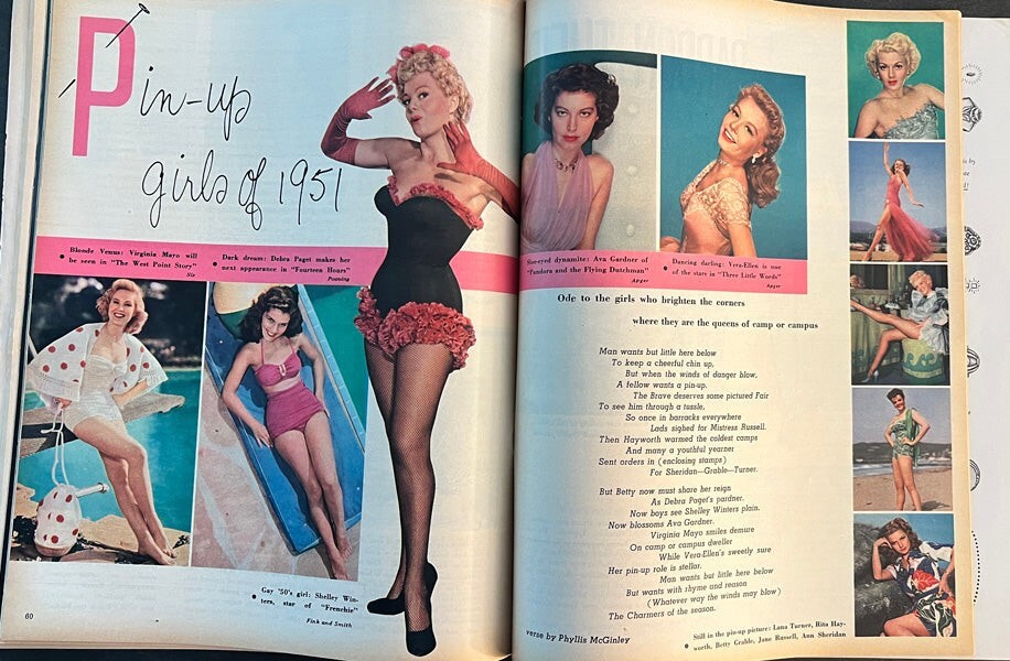 Photoplay Magazine June Allyson Cover Marlon Brando Pin Up Girls of 1951 December 1950 This is the complete issue of the Photoplay film magazine containing color and b/w pictures, articles, interviews, reviews, advertisments and features. This vintage original magazine measures approximately 8.5 x 11 inches. Silver Screen Mementos are gradually releasing from their vast archives thousands of original photographs, transparencies, negatives, slides, lobby cards, magazines, brochures, press books and other movie or television memorabilia