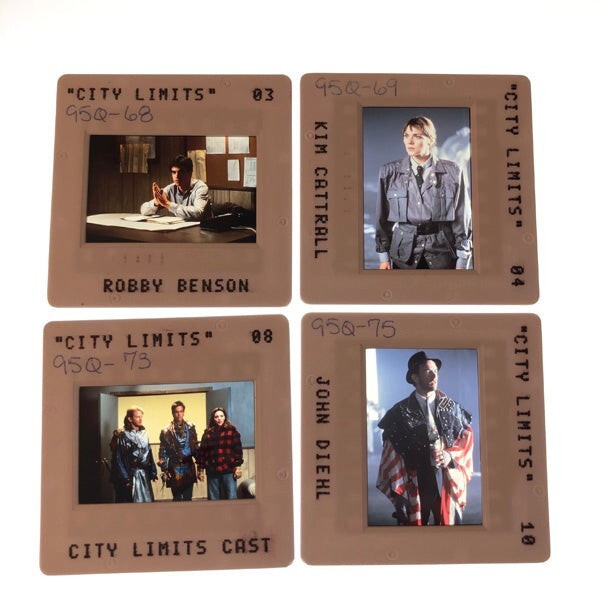 City Limits 1985 Kim Cattrall Robby Benson Collection Lot of 13 Original 35mm Transparency SlidesThis is an original studio or photographer's 35 mm color slide transparency from our historic archive. This is a real collector's item and would make superb quality photographs or prints. This would also be a great addition to any collection or image archive. This original color slide transparency is in Excellent condition. This collector's item is being sold from one collector to another, no rights are given or implied. Silver Screen Mementos are gradually releasing from their vast archives thousands of original photographs, transparencies, negatives, slides, lobby cards and other movie or television memorabilia.