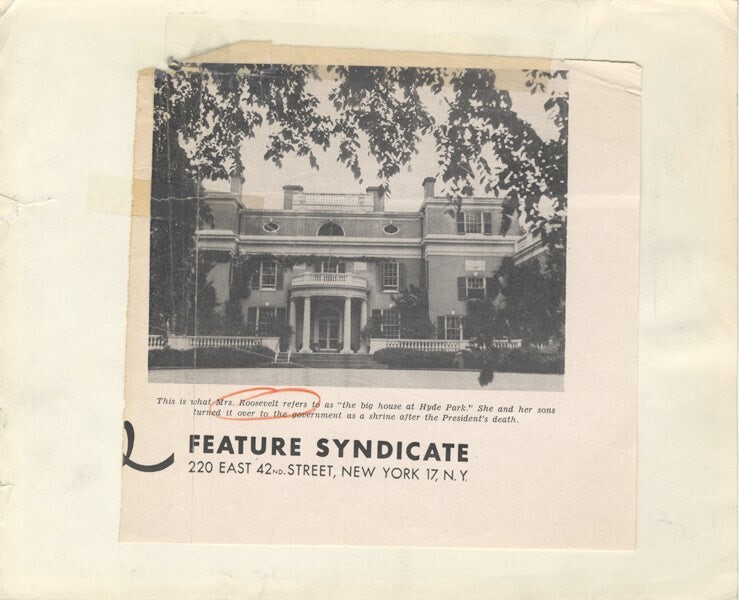 Franklin D Roosevelt Springwood Estate Hyde Park New York Original 8x10 Photo Fair/Good Condition (wear to edges, 1" tear right margin no paper loss) This is an original photograph from our historic archives. We have a huge archive of original photographs, negatives, transparencies, posters, magazines and rare memorabilia that we are gradually releasing.