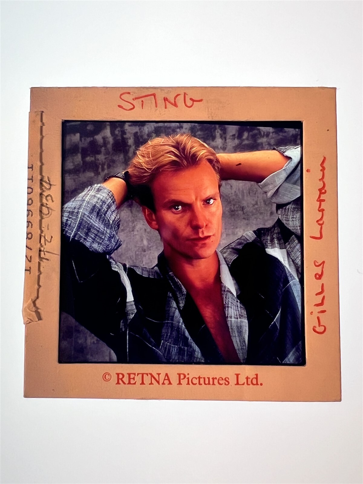 Sting The Police 1980's Photo Shoot Stamped Original 2.25 x 2.25 TransparencyThis is an original studio or photographer's 2.25 x 2.25 inches color slide transparency from our historic archive. This is a real collector's item and would make superb quality photographs or prints. This would also be a great addition to any collection or image archive. This original color slide transparency is in Excellent condition. This collector's item is being sold from one collector to another, no rights are given or implied. Silver Screen Mementos are gradually releasing from their vast archives thousands of original photographs, transparencies, negatives, slides, lobby cards and other movie or television memorabilia.