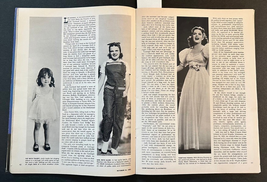 Show Business Magazine Judy Garland Cover rare complete magazine also featuring Walt Disneyland Theme Park , Sharon Hugueny, October 1961 A real Collectors’ item being released from our historic archives, this is a complete vintage magazine. Silver Screen Mementos are gradually releasing from their vast archives thousands of original photographs, transparencies, negatives, slides, lobby cards, magazines, brochures, press books and other movie or television memorabilia. This collector's item is being sold from one collector to another, no rights are given or implied. Silver Screen Mementos are gradually releasing from their vast archives thousands of original photographs, transparencies, negatives, slides, lobby cards and other movie or television memorabilia.