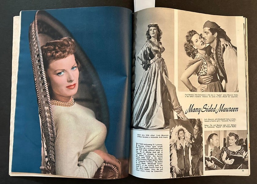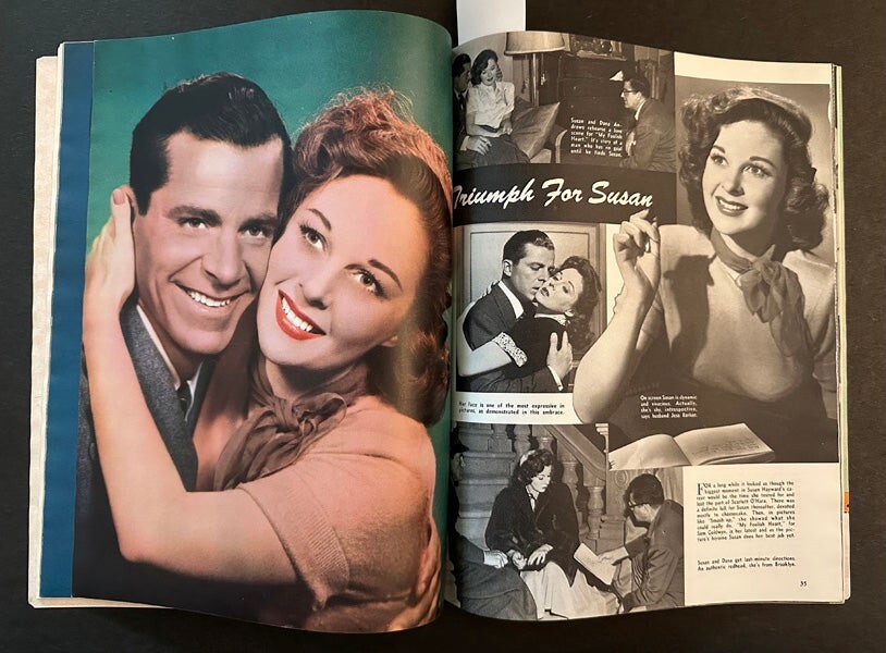 Screenland Movie Magazine June Allyson Cover March 1950 complete issue also featuring Maureen O'Hara ,Virginia Mayo, Susan Hayward and Linda Darnell etc. A real Collectors’ item being released from our historic archives, this is a complete vintage magazine. Silver Screen Mementos are gradually releasing from their vast archives thousands of original photographs, transparencies, negatives, slides, lobby cards, magazines, brochures, press books and other movie or television memorabilia. This collector's item is being sold from one collector to another, no rights are given or implied. Silver Screen Mementos are gradually releasing from their vast archives thousands of original photographs, transparencies, negatives, slides, lobby cards and other movie or television memorabilia.