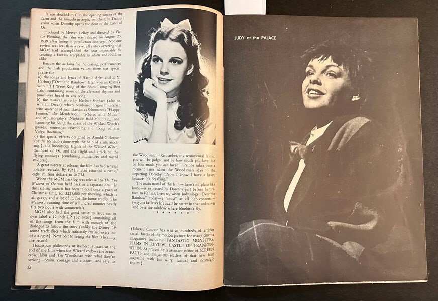 Judy Garland Film Careers 66 page rare Magazine 1964 Photos Articles filmography - rare complete vintage magazine in VG/Near Mint Condition A real Collectors’ item being released from our historic archives, this is a complete vintage magazine. Silver Screen Mementos are gradually releasing from their vast archives thousands of original photographs, transparencies, negatives, slides, lobby cards, magazines, brochures, press books and other movie or television memorabilia. This collector's item is being sold from one collector to another, no rights are given or implied. Silver Screen Mementos are gradually releasing from their vast archives thousands of original photographs, transparencies, negatives, slides, lobby cards and other movie or television memorabilia.