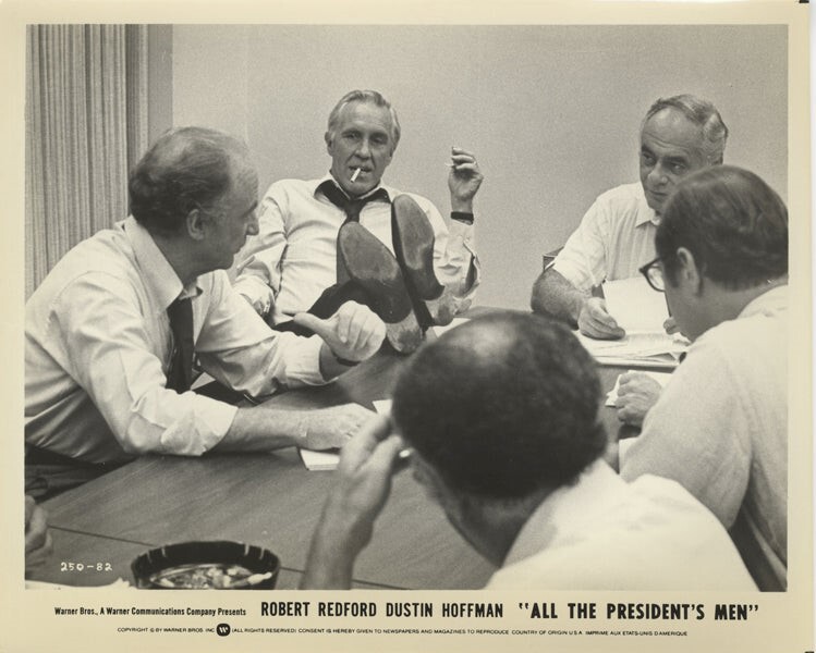 All The President's Men Original 8x10 Photo Jason Robards Martin Balsam 1976 This item is an ORIGINAL 8x10 photo from the historic archives of Silver Screen Mementos. This original photograph was made in the actual year the film, television show or event was produced. The movie studios produced publicity photographs for distribution to the press, photo agencies and publicity departments to advertise the film/tv show or event. Very often original photos have press release information on the reverse of the photo - movie credits, description of the scene, event and people involved. This is a historic piece of cinema art and is being offered from one collector to another, no rights given or implied. Silver Screen are gradually releasing thousands of Original Photographs, Transparencies, Negatives, Lobby Cards, Posters, Magazines and other memorabilia from our historic archive.