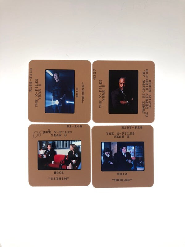 The X Files Collection x 10 Original 35mm Transparency Slides featuring Gillian Anderson, Annabeth Gish and Robert PatrickThis is an original studio or photographer's 35 mm color slide transparency from our historic archive. This is a real collector's item and would make superb quality photographs or prints. This would also be a great addition to any collection or image archive. This original color slide transparency is in Excellent condition. This collector's item is being sold from one collector to another, no rights are given or implied. Silver Screen Mementos are gradually releasing from their vast archives thousands of original photographs, transparencies, negatives, slides, lobby cards and other movie or television memorabilia.