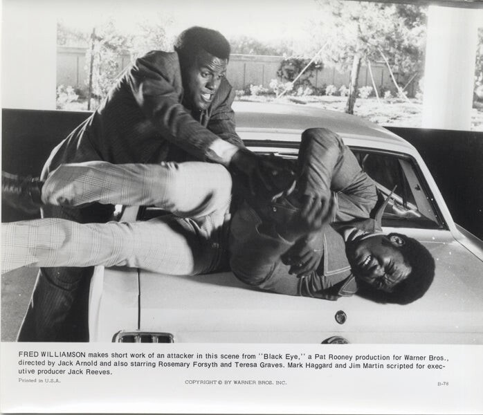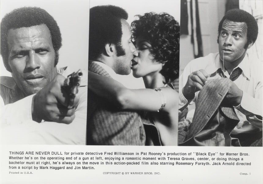Black Eye 1974 Collection Lot of 7 Original Press Kit Photos measuring approx 8x10 inches from the cult Blaxploitation film starring Fred Williamson and Teresa Graves in Near Mint Condition This item is an ORIGINAL 8x10 photo from the historic archives of Silver Screen Mementos. This original photograph was made in the actual year the film, television show or event was produced. The movie studios produced publicity photographs for distribution to the press, photo agencies and publicity departments to advertise the film/tv show or event. Very often original photos have press release information on the reverse of the photo - movie credits, description of the scene, event and people involved. This is a historic piece of cinema art and is being offered from one collector to another, no rights given or implied. Silver Screen are gradually releasing thousands of Original Photographs, Transparencies, Negatives, Lobby Cards, Posters, Magazines and other memorabilia from our historic archive.