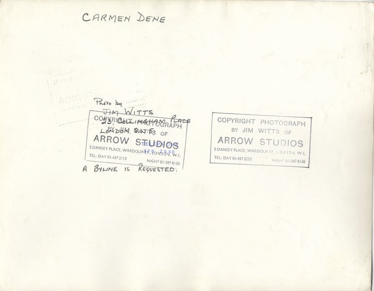 Carmen Dene 1960's Buxom Glamour Pose in bikini Original 12x15 Double Weight Silver gelatin Stamped Photo, rare in VG/Near Mint Condition This item is a Vintage Original Oversized Silver Gelatin photograph from the historic archives of Silver Screen Mementos. We have a huge collection of original vintage oversized photographs that were produced by the photographer or photo agency with most having the photographer/agency stamp on the back and many with snipe detailing information about the shoot or subject. These were often printed for gallery or promotional display. This is a historic piece of photographic art and is being offered from one collector to another, no rights given or implied. Silver Screen are gradually releasing thousands of Original Photographs, Transparencies, Negatives, Lobby Cards, Posters, Magazines and other memorabilia from our historic archive.