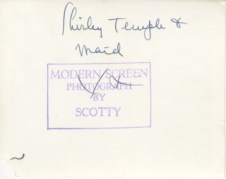 Shirley Temple 1940's Teen Star served tea by maid Photographer Stamped for Modern Screen Magazine Original 4x5 Snapshot Photo. Good/VG Condition (1/4" tear bottom right corner with paper loss) This item is an ORIGINAL vintage snapshot photo from the historic archives of Silver Screen Mementos. This original photo was produced the year the picture was taken. This is a historic piece of cinema art and is being offered from one collector to another, no rights given or implied. Silver Screen Mementos are gradually releasing thousands of Original Photographs, Transparencies, Slides, Lobby Cards, Magazines and other entertainment memorabilia from its historic archives.