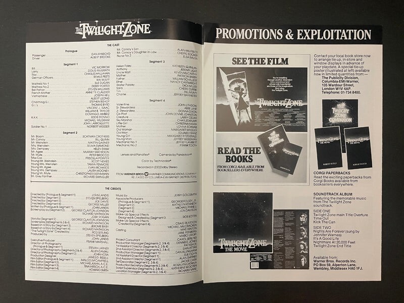 Twilight Zone The Movie 1983 UK Pressbook starring John Lithgow, Vic Morrow, Dan Aykroyd, Scatman Crothers and Kathleen Quinlan. This 6 page UK Pressbook features movie poster art, cast and movie scene photos, and movie campaign advertisements.A movie pressbook is a promotional tool used by film studios and distributors to advertise and market a movie before its release. It's essentially a booklet or a package containing various materials like synopsis, promotional images, posters, advertising materials, cast and crew information, suggested promotional strategies, and more. These pressbooks were produced in very low quantities and distributed to theater owners and exhibitors to assist them in promoting the film in their localities. They were valuable because they provided crucial information and materials necessary for the marketing and promotion of the movie. Pressbooks often contained suggestions for marketing strategies, including how to display posters, design newspaper ads, and generate interest in the film within the local community.Today, movie pressbooks have become collector's items due to their historical significance and rarity. They offer insights into the marketing and promotional strategies of films from different eras, making them valuable for movie enthusiasts, collectors, historians, and even those interested in advertising and marketing history. The scarcity of these items, especially for older or iconic films, contributes to their value among collectors and enthusiasts of cinema memorabilia.A real Collectors’ item being released from our historic archives, this is a complete vintage magazine. Silver Screen Mementos are gradually releasing from their vast archives thousands of original photographs, transparencies, negatives, slides, lobby cards, magazines, brochures, press books and other movie or television memorabilia.
