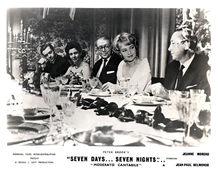 Seven Days Seven Nights Original Lobby Card 1960 Jeanne Moreau, Jean Paul Belmondo VG/Near Mint Condition Silver Screen Mementos are pleased to be able to offer this authentic original Lobby Card measuring 8x10 inches. This lobby card is from Great Britain and was printed during the actual year the film was released in movie theaters. The lobby card (also known as Front of House/ FOH card in the UK) was created by the film studios to publicize the movie and was intended for display outside the movie theatre in special glass display boxes. These are NOT reproductions! You are looking at a truly original piece of cinema art, a genuine collector's item. We have a huge archive of over 250,000 original lobby cards, mostly from the 1930's to the 1980's. We will be releasing many more rare gems from our vast collection, which will include lobby cards, original photographs, movie stills, magazines, brochures negatives, transparencies, slides and other collectible items of movie memorabilia.