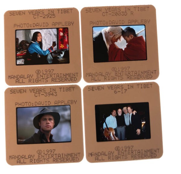 Seven Years in Tibet Brad Pitt, David Thewlis, Jamyang Jamtsho Wangchuk, Lhakpa Tsamchoe, Director Jean-Jacques Annaud, Yo-Yo Ma, Composer John Williams Lot of 15 Original 35mm Transparency Stamped Mount 1997This is an original studio or photographer's 35 mm color slide transparency from our historic archive. This is a real collector's item and would make superb quality photographs or prints. This would also be a great addition to any collection or image archive. This original color slide transparency is in Excellent condition. This collector's item is being sold from one collector to another, no rights are given or implied. Silver Screen Mementos are gradually releasing from their vast archives thousands of original photographs, transparencies, negatives, slides, lobby cards and other movie or television memorabilia.