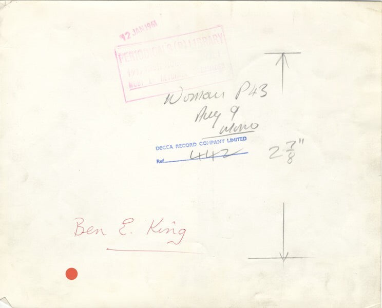 Ben E. King R&B Soul Singer London Records Publicity Portrait Original 8x10 Photo Stamped 1961 Good/VG Condition ( surface marks, wear to edges) This item is an ORIGINAL 8x10 photo from the historic archives of Silver Screen Mementos. This original photograph was made in the actual year the film, television show or event was produced. The movie studios produced publicity photographs for distribution to the press, photo agencies and publicity departments to advertise the film/tv show or event. Very often original photos have press release information on the reverse of the photo - movie credits, description of the scene, event and people involved. This is a historic piece of cinema art and is being offered from one collector to another, no rights given or implied. Silver Screen are gradually releasing thousands of Original Photographs, Transparencies, Negatives, Lobby Cards, Posters, Magazines and other memorabilia from our historic archive.