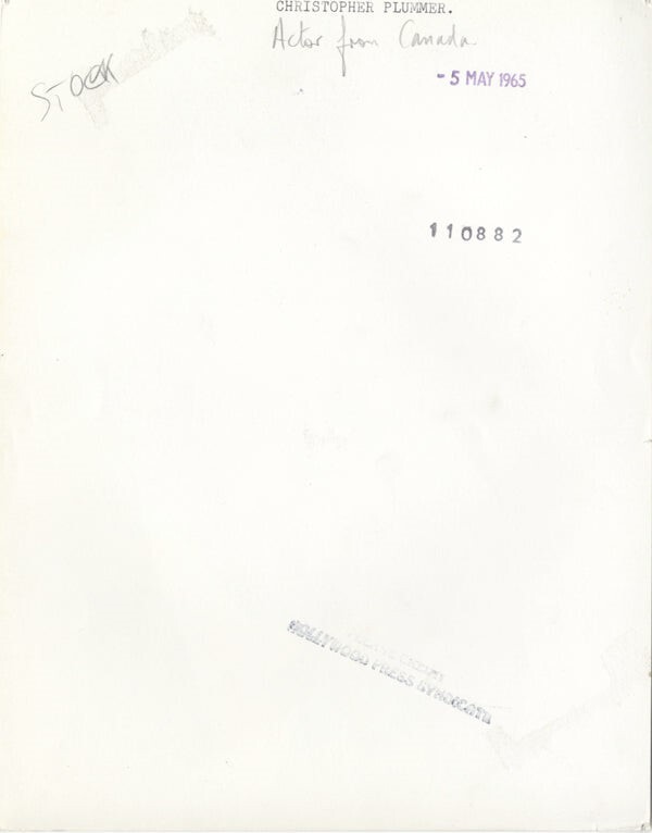 Christopher Plummer Studio Portrait Original 7x9 approx Photo Stamped 1965 VG/Near Mint Condition This item is an ORIGINAL 8x10 photo from the historic archives of Silver Screen Mementos. This original photograph was made in the actual year the film, television show or event was produced. The movie studios produced publicity photographs for distribution to the press, photo agencies and publicity departments to advertise the film/tv show or event. Very often original photos have press release information on the reverse of the photo - movie credits, description of the scene, event and people involved. This is a historic piece of cinema art and is being offered from one collector to another, no rights given or implied. Silver Screen are gradually releasing thousands of Original Photographs, Transparencies, Negatives, Lobby Cards, Posters, Magazines and other memorabilia from our historic archive.