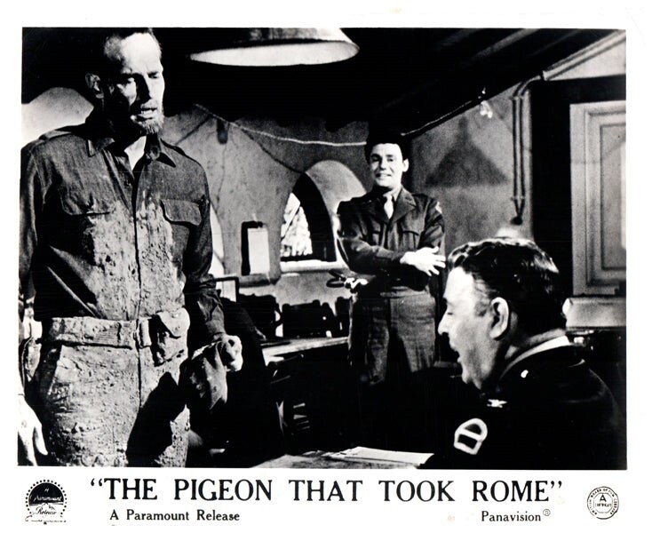 The Pigeon That Took Rome Original Lobby Card 1962 Charlton Heston Elsa Martinelli VG Condition Silver Screen Mementos are pleased to be able to offer this authentic original Lobby Card measuring 8x10 inches. This lobby card is from Great Britain and was printed during the actual year the film was released in movie theaters. The lobby card (also known as Front of House/ FOH card in the UK) was created by the film studios to publicize the movie and was intended for display outside the movie theatre in special glass display boxes. These are NOT reproductions! You are looking at a truly original piece of cinema art, a genuine collector's item. We have a huge archive of over 250,000 original lobby cards, mostly from the 1930's to the 1980's. We will be releasing many more rare gems from our vast collection, which will include lobby cards, original photographs, movie stills, magazines, brochures negatives, transparencies, slides and other collectible items of movie memorabilia.