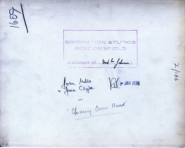 Charing Cross Road 1935 John Mills embracing June Clyde Original 8x10 Double Weight Photo Stamped , very rare in Near Mint Condition This item is an ORIGINAL 8x10 photo from the historic archives of Silver Screen Mementos. This original photograph was made in the actual year the film, television show or event was produced. The movie studios produced publicity photographs for distribution to the press, photo agencies and publicity departments to advertise the film/tv show or event. Very often original photos have press release information on the reverse of the photo - movie credits, description of the scene, event and people involved. This is a historic piece of cinema art and is being offered from one collector to another, no rights given or implied. Silver Screen are gradually releasing thousands of Original Photographs, Transparencies, Negatives, Lobby Cards, Posters, Magazines and other memorabilia from our historic archive.
