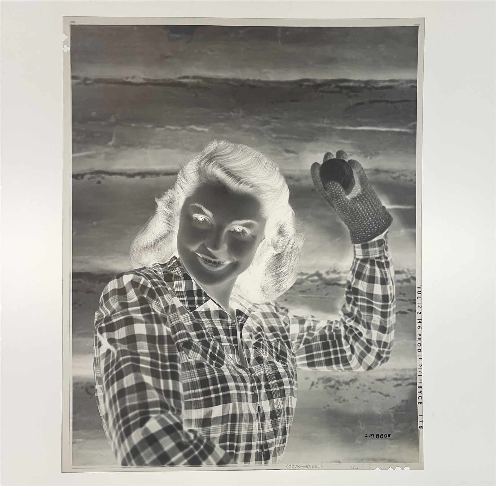 Esther Williams 1940's MGM Portrait holding snowball Original 8x10 Camera Negative with hand applied India ink code and retouched highlights.This is an original studio or photographer's 8x10 inches black and white photographic negative from our historic archive. This is a real collector's item and would make superb quality photographs or prints. This would also be a great addition to any collection or image archive. This original black and white photographic negative is in Excellent condition. This collector's item is being sold from one collector to another, no rights are given or implied. Silver Screen Mementos are gradually releasing from their vast archives thousands of original photographs, transparencies, negatives, slides, lobby cards and other movie or television memorabilia.