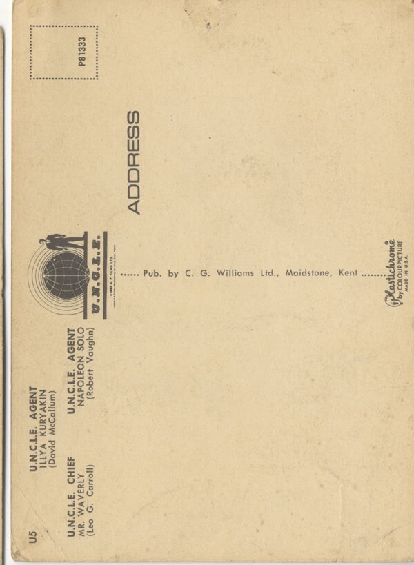 The Man From UNCLE Robert Vaughn David McCallum ?Leo G. Carroll Vintage Original Postcard VG/Near Mint Condition This is an authentic original vintage postcard, a real collectors’ item. Postcards typically measure between 3.5 x 5 inches (9x12 cm approx) to 4.5 x 7 inches (12x18 cm approx). Silver Screen Mementos are gradually releasing thousands of Original Photographs, Transparencies, Slides, Lobby Cards, Magazines, Movie Posters and other entertainment memorabilia from its historic archives.