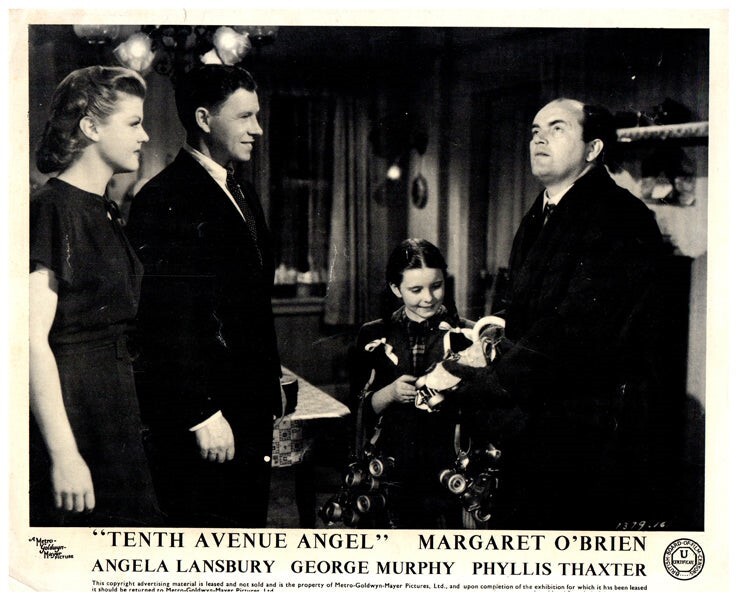Tenth Avenue Angel Original Lobby Card 1948 Margaret O'Brien Angela Lansbury George Murphy VG Condition Silver Screen Mementos are pleased to be able to offer this authentic original Lobby Card measuring 8x10 inches. This lobby card is from Great Britain and was printed during the actual year the film was released in movie theaters. The lobby card (also known as Front of House/ FOH card in the UK) was created by the film studios to publicize the movie and was intended for display outside the movie theatre in special glass display boxes. These are NOT reproductions! You are looking at a truly original piece of cinema art, a genuine collector's item. We have a huge archive of over 250,000 original lobby cards, mostly from the 1930's to the 1980's. We will be releasing many more rare gems from our vast collection, which will include lobby cards, original photographs, movie stills, magazines, brochures negatives, transparencies, slides and other collectible items of movie memorabilia.