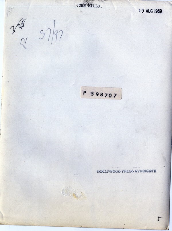John Mills 1969 Original 8x10 Photo VG Condition (border trim) This item is an ORIGINAL 8x10 photo from the historic archives of Silver Screen Mementos. This original photograph was made in the actual year the film, television show or event was produced. The movie studios produced publicity photographs for distribution to the press, photo agencies and publicity departments to advertise the film/tv show or event. Very often original photos have press release information on the reverse of the photo - movie credits, description of the scene, event and people involved. This is a historic piece of cinema art and is being offered from one collector to another, no rights given or implied. Silver Screen are gradually releasing thousands of Original Photographs, Transparencies, Negatives, Lobby Cards, Posters, Magazines and other memorabilia from our historic archive.