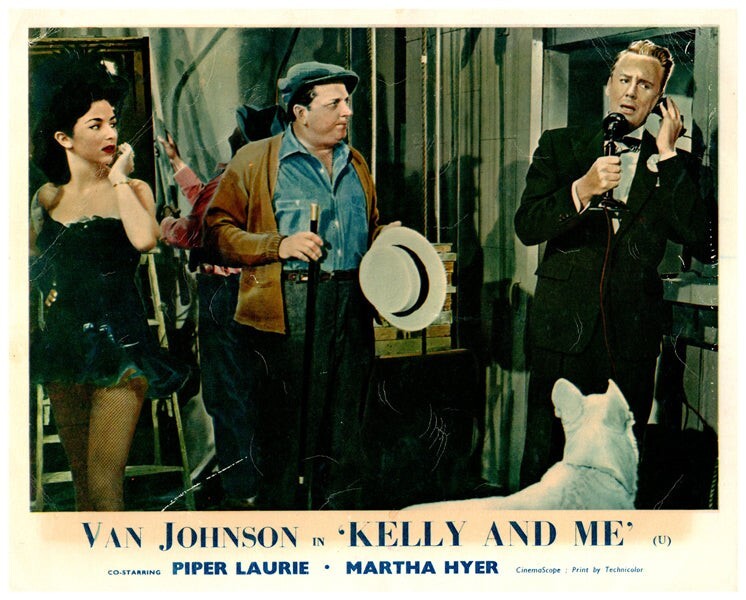 Kelly And Me Original Lobby Card 1957 Van Johnson Piper Laurie Martha Hyer Onslow Stevens VG Condition Silver Screen Mementos are pleased to be able to offer this authentic original Lobby Card measuring 8x10 inches. This lobby card is from Great Britain and was printed during the actual year the film was released in movie theaters. The lobby card (also known as Front of House/ FOH card in the UK) was created by the film studios to publicize the movie and was intended for display outside the movie theatre in special glass display boxes. These are NOT reproductions! You are looking at a truly original piece of cinema art, a genuine collector's item. We have a huge archive of over 250,000 original lobby cards, mostly from the 1930's to the 1980's. We will be releasing many more rare gems from our vast collection, which will include lobby cards, original photographs, movie stills, magazines, brochures negatives, transparencies, slides and other collectible items of movie memorabilia.