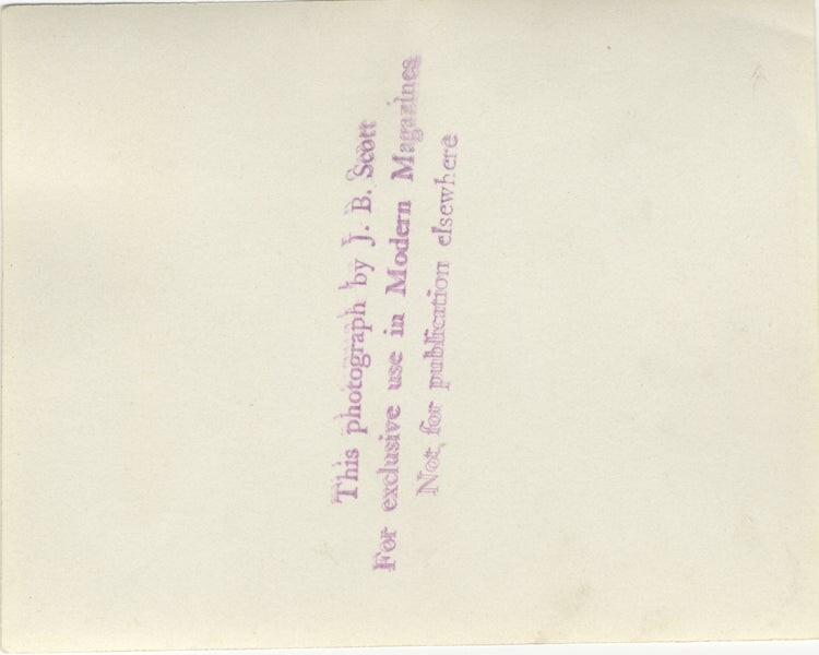 1930s Starlet Dinner with Men Dressed in Tuxedos Original 4x5 approx Photograph Stamped by J.B. Scott for Modern Magazines. VG/Near Mint Condition This item is an ORIGINAL 8x10 photo from the historic archives of Silver Screen Mementos. This original photograph was made in the actual year the film, television show or event was produced. The movie studios produced publicity photographs for distribution to the press, photo agencies and publicity departments to advertise the film/tv show or event. Very often original photos have press release information on the reverse of the photo - movie credits, description of the scene, event and people involved. This is a historic piece of cinema art and is being offered from one collector to another, no rights given or implied. Silver Screen are gradually releasing thousands of Original Photographs, Transparencies, Negatives, Lobby Cards, Posters, Magazines and other memorabilia from our historic archive.