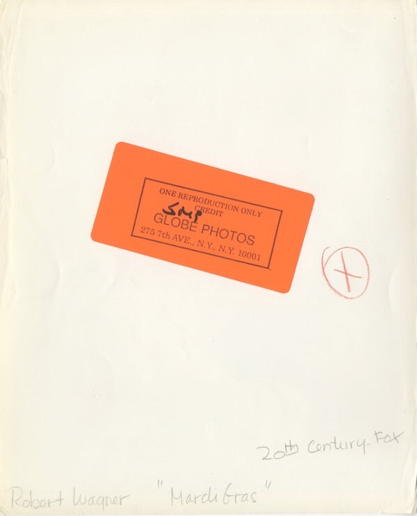 Robert Wagner Mardi Gras 1958 Studio Portrait Original 8x10 Photo Stamped, classic portrait of the classic star - Good/VG Condition (edge and corner wear) This item is an ORIGINAL 8x10 photo from the historic archives of Silver Screen Mementos. This original photograph was made in the actual year the film, television show or event was produced. The movie studios produced publicity photographs for distribution to the press, photo agencies and publicity departments to advertise the film/tv show or event. Very often original photos have press release information on the reverse of the photo - movie credits, description of the scene, event and people involved. This is a historic piece of cinema art and is being offered from one collector to another, no rights given or implied. Silver Screen are gradually releasing thousands of Original Photographs, Transparencies, Negatives, Lobby Cards, Posters, Magazines and other memorabilia from our historic archive.