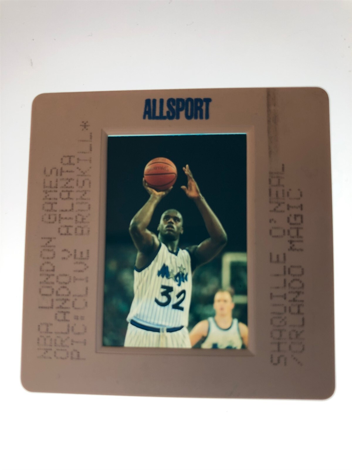 Shaquille O'Neal Orlando Magic Basketball Legend Free Throw Shot vs Atlanta 1993 NBA London Games Original 35mm Transparency Stamped Mount , very rare This is an original studio or photographer's 35 mm color slide transparency from our historic archive. This is a real collector's item and would make superb quality photographs or prints. This would also be a great addition to any collection or image archive. This original color slide transparency is in Excellent condition. This collector's item is being sold from one collector to another, no rights are given or implied. Silver Screen Mementos are gradually releasing from their vast archives thousands of original photographs, transparencies, negatives, slides, lobby cards and other movie or television memorabilia.