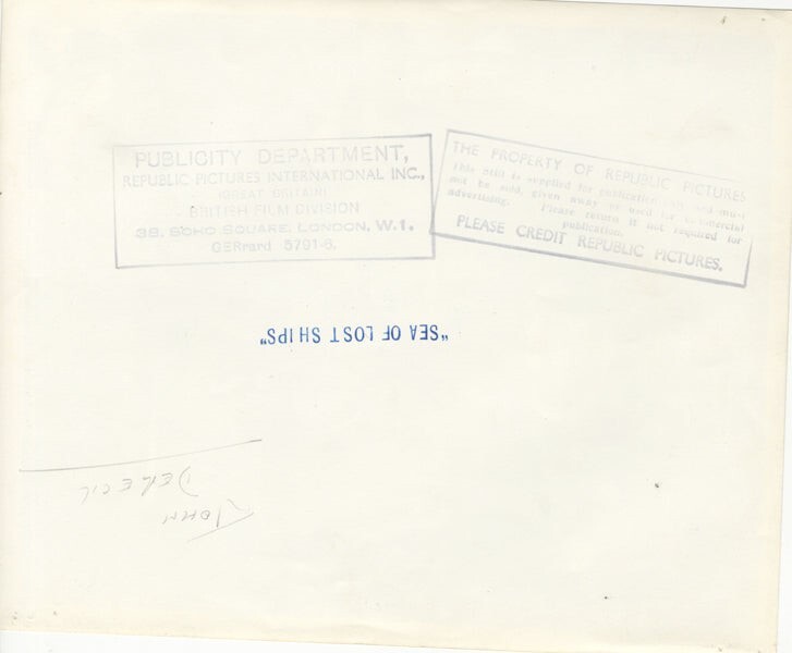 Sea of Lost Ships 1953 John Derek, Wanda Hendrix Embracing near Christmas Tree Original 8x10 Photo Stamped Good/VG Condition (pinholes) This item is an ORIGINAL 8x10 photo from the historic archives of Silver Screen Mementos. This original photograph was made in the actual year the film, television show or event was produced. The movie studios produced publicity photographs for distribution to the press, photo agencies and publicity departments to advertise the film/tv show or event. Very often original photos have press release information on the reverse of the photo - movie credits, description of the scene, event and people involved. This is a historic piece of cinema art and is being offered from one collector to another, no rights given or implied. Silver Screen are gradually releasing thousands of Original Photographs, Transparencies, Negatives, Lobby Cards, Posters, Magazines and other memorabilia from our historic archive.