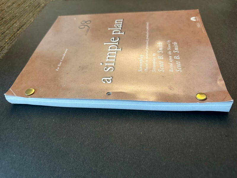A Simple Plan Screenplay Script 1998 Academy Awards 119 pages Scott B Smith - very rare submitted to Academy members for their consideration for the 1998 Academy Awards. A real Collectors’ item being released from our historic archives, this is a complete vintage magazine. Silver Screen Mementos are gradually releasing from their vast archives thousands of original photographs, transparencies, negatives, slides, lobby cards, magazines, brochures, press books and other movie or television memorabilia. This collector's item is being sold from one collector to another, no rights are given or implied. Silver Screen Mementos are gradually releasing from their vast archives thousands of original photographs, transparencies, negatives, slides, lobby cards and other movie or television memorabilia.