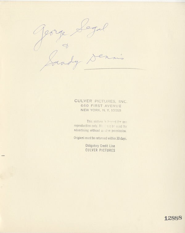 Who's Afraid of Virginia Woolf? 1966 Sandy Dennis, George Segal Original 8x10 Photo Stamped VG/Near Mint Conditon This item is an ORIGINAL 8x10 photo from the historic archives of Silver Screen Mementos. This original photograph was made in the actual year the film, television show or event was produced. The movie studios produced publicity photographs for distribution to the press, photo agencies and publicity departments to advertise the film/tv show or event. Very often original photos have press release information on the reverse of the photo - movie credits, description of the scene, event and people involved. This is a historic piece of cinema art and is being offered from one collector to another, no rights given or implied. Silver Screen are gradually releasing thousands of Original Photographs, Transparencies, Negatives, Lobby Cards, Posters, Magazines and other memorabilia from our historic archive.