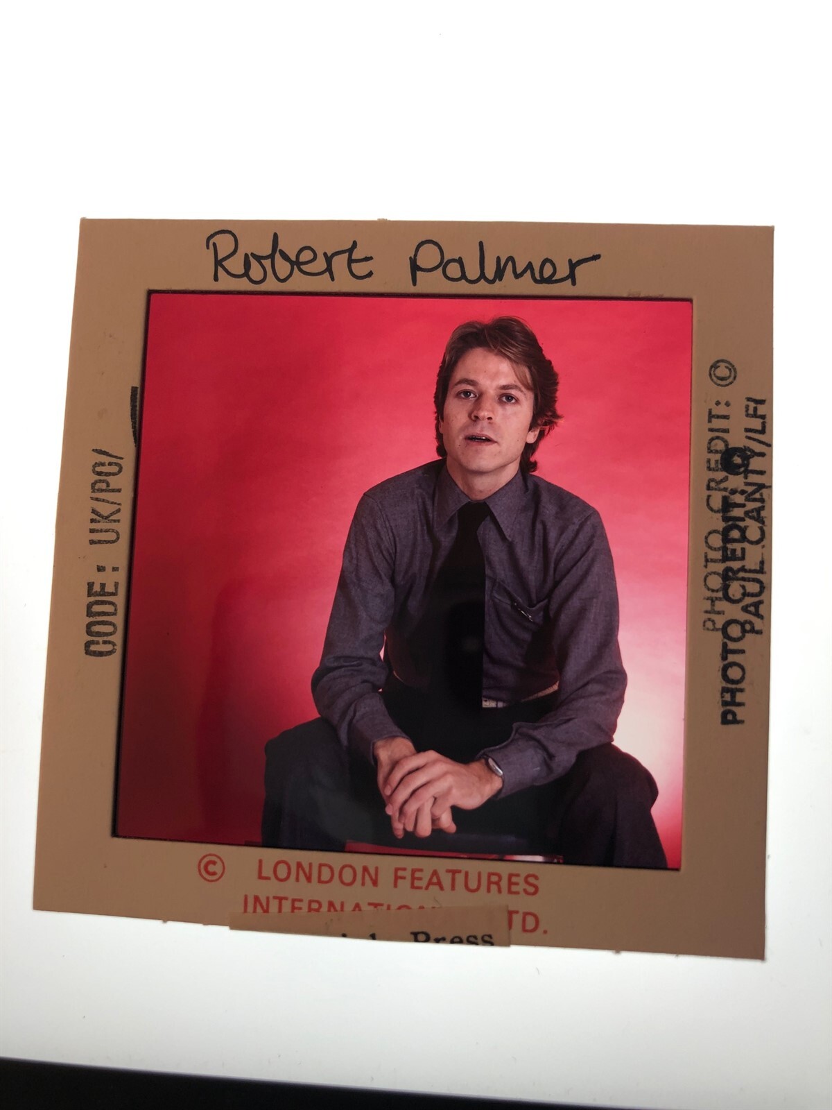Robert Palmer 1980's Pop Star Photo Shoot Original 2.25 x 2.25 Transparency This is an original studio or photographer's 2.25 x 2.25 inches color slide transparency from our historic archive. This is a real collector's item and would make superb quality photographs or prints. This would also be a great addition to any collection or image archive. This original color slide transparency is in Excellent condition. This collector's item is being sold from one collector to another, no rights are given or implied. Silver Screen Mementos are gradually releasing from their vast archives thousands of original photographs, transparencies, negatives, slides, lobby cards and other movie or television memorabilia.