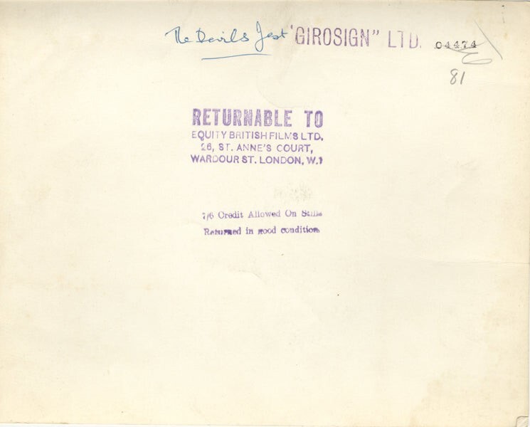 The Devil's Jest Mara Russell-Tavernan, Ivan Craig, Derek Aylward Original 8x10 Double Weight Photo Stamped VG Condition This item is an ORIGINAL 8x10 photo from the historic archives of Silver Screen Mementos. This original photograph was made in the actual year the film, television show or event was produced. The movie studios produced publicity photographs for distribution to the press, photo agencies and publicity departments to advertise the film/tv show or event. Very often original photos have press release information on the reverse of the photo - movie credits, description of the scene, event and people involved. This is a historic piece of cinema art and is being offered from one collector to another, no rights given or implied. Silver Screen are gradually releasing thousands of Original Photographs, Transparencies, Negatives, Lobby Cards, Posters, Magazines and other memorabilia from our historic archive.