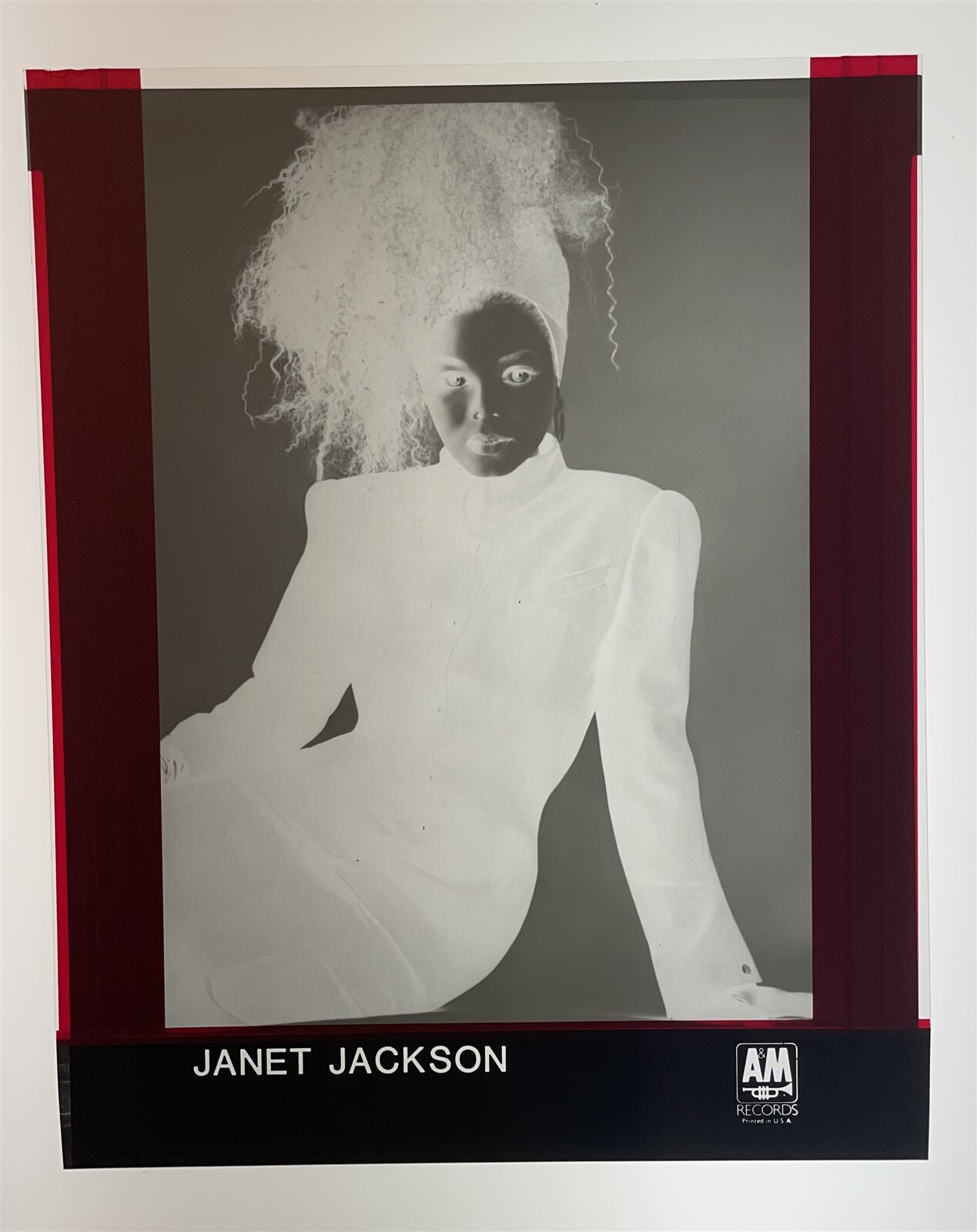 Janet Jackson Exotic Photo Shoot AM Records Vintage 8x10 Negative This is an original studio or Record Company 8x10 inches black and white photographic negative from our historic archive. This was produced by the studio or record company to print 8x10 promotional photographs and may have the red Amberlith masking tape and credit captions attached. This is a real collector's item and would make superb quality photographs or prints. This would also be a great addition to any collection or image archive. This Vintage studio black and white photographic negative is in Excellent condition. This collector's item is being sold from one collector to another, no rights are given or implied. Silver Screen Mementos are gradually releasing from their vast archives thousands of original photographs, transparencies, negatives, slides, lobby cards and other movie or television memorabilia.