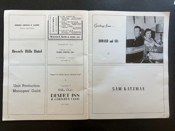 Ballyhoo Ball Riviera Country Club Los Angeles 1957 28 pages featuring Vintage Adverts , articles, photos and info. We are gradually releasing from our historic archives original photographs, negatives, transparency, slides, movie posters, magazines, books, press books, pins, autographs, trading cards, press badges and other rare collectors items.
