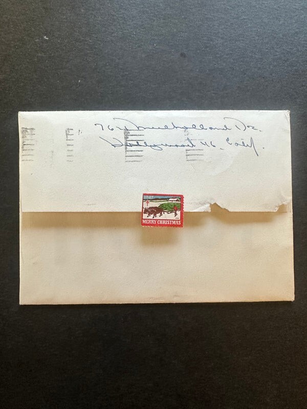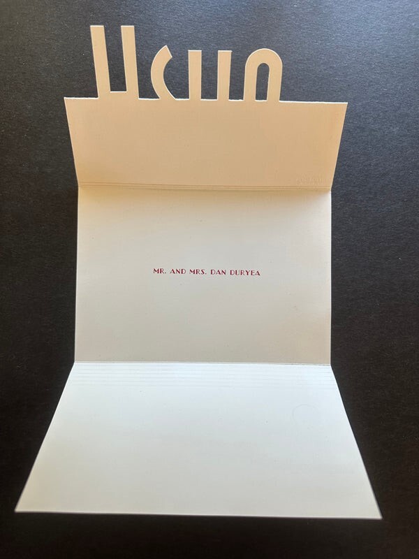 Dan Duryea Vintage Original Custom Christmas Card and Stamped Envelope 1947 We are gradually releasing from our historic archives original photographs, negatives, transparency, slides, movie posters, magazines, books, press books, pins, autographs, trading cards, press badges and other rare collectors items.