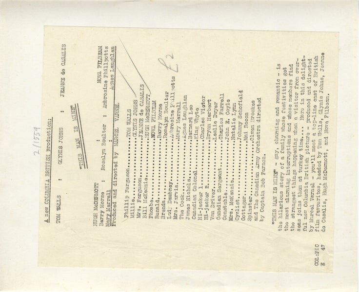 This Man Is Mine Glynis Johns Hugh McDermott Original 8x10 Photo 1946 with snipe VG/Near Mint This item is an ORIGINAL 8x10 photo from the historic archives of Silver Screen Mementos. This original photograph was made in the actual year the film, television show or event was produced. The movie studios produced publicity photographs for distribution to the press, photo agencies and publicity departments to advertise the film/tv show or event. Very often original photos have press release information on the reverse of the photo - movie credits, description of the scene, event and people involved. This is a historic piece of cinema art and is being offered from one collector to another, no rights given or implied. Silver Screen are gradually releasing thousands of Original Photographs, Transparencies, Negatives, Lobby Cards, Posters, Magazines and other memorabilia from our historic archive.