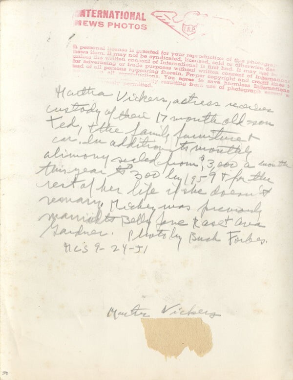Martha Vickers News article story Original Stamped 7x9 Photo VG Condition This item is an ORIGINAL 8x10 photo from the historic archives of Silver Screen Mementos. This original photograph was made in the actual year the film, television show or event was produced. The movie studios produced publicity photographs for distribution to the press, photo agencies and publicity departments to advertise the film/tv show or event. Very often original photos have press release information on the reverse of the photo - movie credits, description of the scene, event and people involved. This is a historic piece of cinema art and is being offered from one collector to another, no rights given or implied. Silver Screen are gradually releasing thousands of Original Photographs, Transparencies, Negatives, Lobby Cards, Posters, Magazines and other memorabilia from our historic archive.