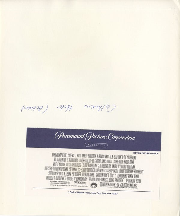 Catherine Hicks portrait Star Trek 4 The Voyage Home Original 8x10 Photo Snipe Near Mint Condition This item is an ORIGINAL 8x10 photo from the historic archives of Silver Screen Mementos. This original photograph was made in the actual year the film, television show or event was produced. The movie studios produced publicity photographs for distribution to the press, photo agencies and publicity departments to advertise the film/tv show or event. Very often original photos have press release information on the reverse of the photo - movie credits, description of the scene, event and people involved. This is a historic piece of cinema art and is being offered from one collector to another, no rights given or implied. Silver Screen are gradually releasing thousands of Original Photographs, Transparencies, Negatives, Lobby Cards, Posters, Magazines and other memorabilia from our historic archive.