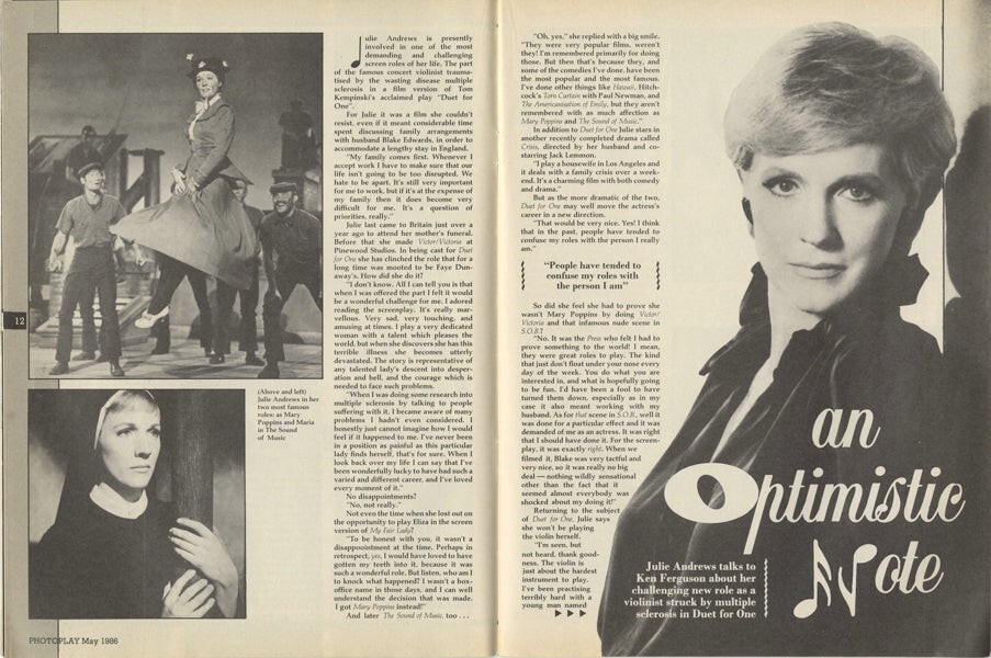 Photoplay Magazine Kathleen Turner Cover Madonna Ian McShane Julie Andrews 1986 complete issue This is the complete issue of the Photoplay film magazine containing color and b/w pictures, articles, interviews, reviews, advertisments and features. This vintage original magazine measures approximately 8.5 x 11 inches. Silver Screen Mementos are gradually releasing from their vast archives thousands of original photographs, transparencies, negatives, slides, lobby cards, magazines, brochures, press books and other movie or television memorabilia