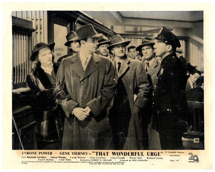 that wonderful urge 1948 original lobby card tyrone power gene tierney