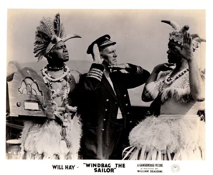 Windbag The Sailor 1936 Original British Front of House Lobby Card Will Hay & Moore Marriott- a very rare original British front of house lobby card from the classic 1936 comedy 'Windbag the Sailor' starring Will Hay, Moore Marriott and Graham Moffatt. Good/VG Condition Silver Screen Mementos are pleased to be able to offer this authentic original Lobby Card measuring 8x10 inches. This lobby card is from Great Britain and was printed during the actual year the film was released in movie theaters. The lobby card (also known as Front of House/ FOH card in the UK) was created by the film studios to publicize the movie and was intended for display outside the movie theatre in special glass display boxes. These are NOT reproductions! You are looking at a truly original piece of cinema art, a genuine collector's item. We have a huge archive of over 250,000 original lobby cards, mostly from the 1930's to the 1980's. We will be releasing many more rare gems from our vast collection, which will include lobby cards, original photographs, movie stills, magazines, brochures negatives, transparencies, slides and other collectible items of movie memorabilia.