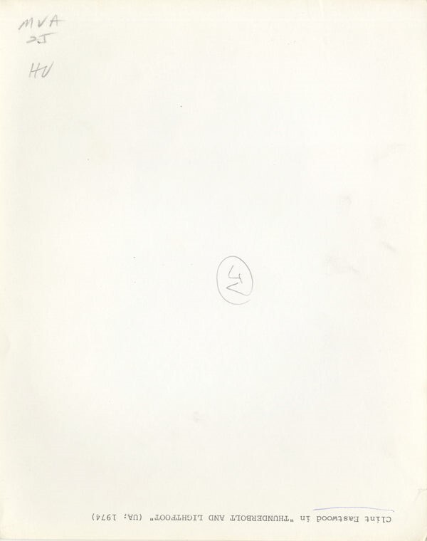 Clint Eastwood Thunderbolt and Lightfoot Scene Original 8x10 Photo with Snipe 1974 VG/Near Mint Condition This item is an ORIGINAL 8x10 photo from the historic archives of Silver Screen Mementos. This original photograph was made in the actual year the film, television show or event was produced. The movie studios produced publicity photographs for distribution to the press, photo agencies and publicity departments to advertise the film/tv show or event. Very often original photos have press release information on the reverse of the photo - movie credits, description of the scene, event and people involved. This is a historic piece of cinema art and is being offered from one collector to another, no rights given or implied. Silver Screen are gradually releasing thousands of Original Photographs, Transparencies, Negatives, Lobby Cards, Posters, Magazines and other memorabilia from our historic archive.