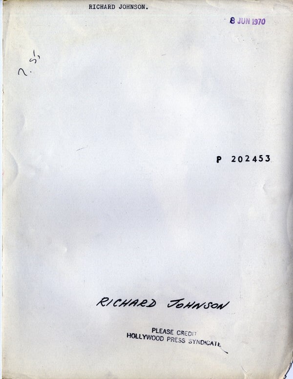 Richard Johnson 1970 Original 8x10 Photo Some Girls Do Bulldog Drummond Good/VG Conditon (border edge wear) This item is an ORIGINAL 8x10 photo from the historic archives of Silver Screen Mementos. This original photograph was made in the actual year the film, television show or event was produced. The movie studios produced publicity photographs for distribution to the press, photo agencies and publicity departments to advertise the film/tv show or event. Very often original photos have press release information on the reverse of the photo - movie credits, description of the scene, event and people involved. This is a historic piece of cinema art and is being offered from one collector to another, no rights given or implied. Silver Screen are gradually releasing thousands of Original Photographs, Transparencies, Negatives, Lobby Cards, Posters, Magazines and other memorabilia from our historic archive.
