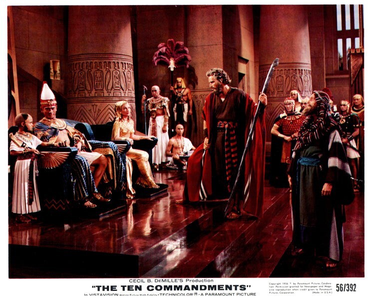 The Ten Commandments Original Lobby Card 1956 Charlton Heston Yul Brynner Anne Baxter Edward G. Robinson Re-release Good Condition (Canadian embossed stamp in corner, pin holes) Silver Screen Mementos are pleased to be able to offer this authentic original Lobby Card measuring 8x10 inches. This lobby card is from USA and was printed during the actual year the film was released in movie theaters. The lobby card (also known as Front of House/ FOH card in the UK) was created by the film studios to publicize the movie and was intended for display outside the movie theatre in special glass display boxes. These are NOT reproductions! You are looking at a truly original piece of cinema art, a genuine collector's item. We have a huge archive of over 250,000 original lobby cards, mostly from the 1930's to the 1980's. We will be releasing many more rare gems from our vast collection, which will include lobby cards, original photographs, movie stills, magazines, brochures negatives, transparencies, slides and other collectible items of movie memorabilia.