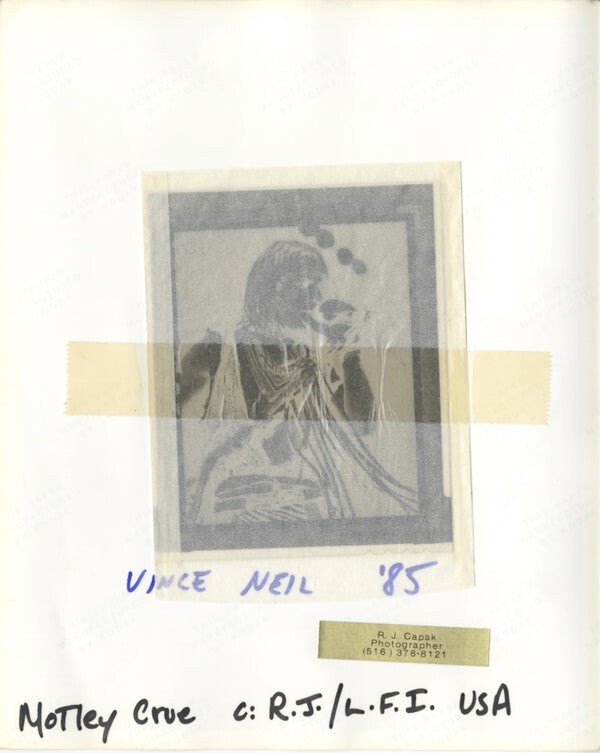Motley Crue Vince Neill 1985 Iconic Concert Stamped Original 8x10 Photo & 4x5 Negative - Near Mint Condition This is an Original vintage photograph from the year of the concert, photo shoot or event measuring approximately 8x10 inches (20x25 cm) unless otherwise stated. Many Original vintage photographs carry the agency or photographer stamp on the back. This is a rare collectors item being offered from one collector to another, no nights given or implied. Silver Screen are gradually releasing thousands of Original Photographs, Transparencies, Negatives, Lobby Cards, Posters, Magazines and other memorabilia from our historic archive.