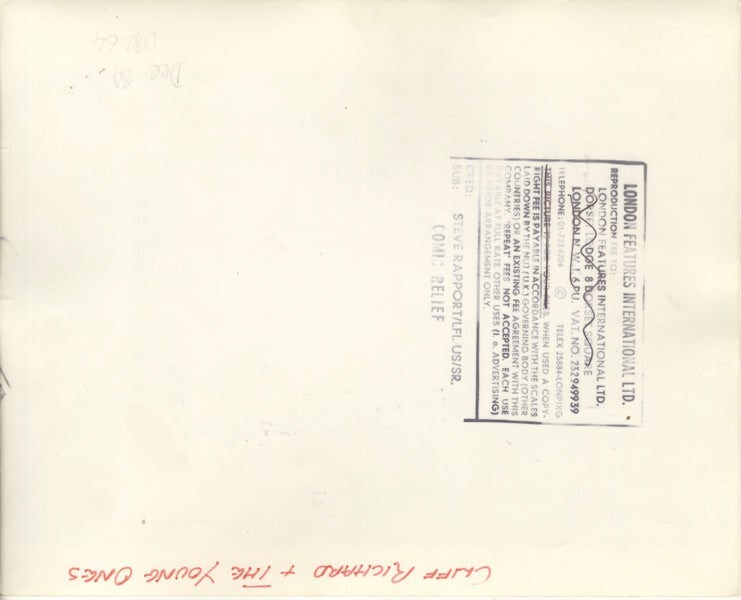 Cliff Richard & The Young Ones Comic Relief Stamped Original 8x10 Photo Near Mint This is an Original vintage photograph from the year of the concert, photo shoot or event measuring approximately 8x10 inches (20x25 cm) unless otherwise stated. Many Original vintage photographs carry the agency or photographer stamp on the back. This is a rare collectors item being offered from one collector to another, no nights given or implied. Silver Screen are gradually releasing thousands of Original Photographs, Transparencies, Negatives, Lobby Cards, Posters, Magazines and other memorabilia from our historic archive.